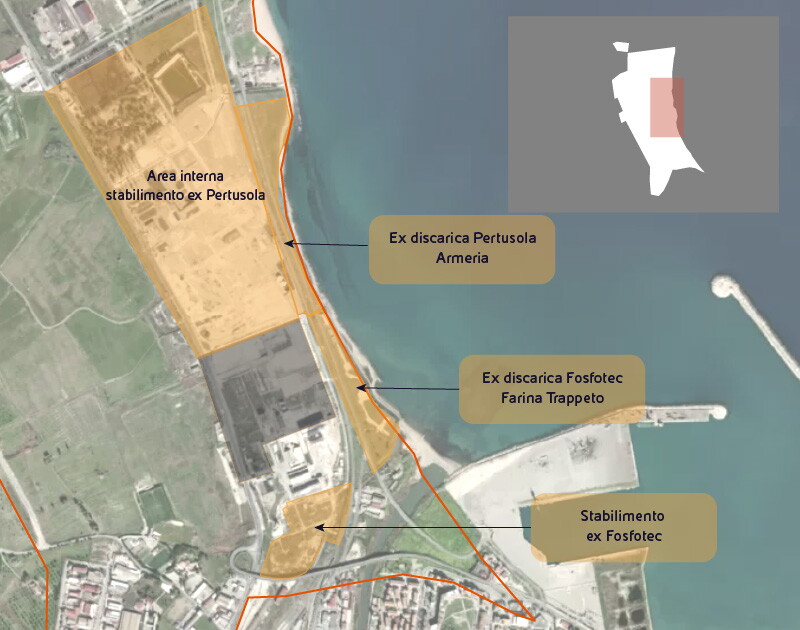 Progetto Ex Discarica fronte mare Pertusola ed ex Stabilimento Pertusola Nord ed Agricoltura Stralcio al Progetto di Bonifica di Fase 2 approvato con decreto nell’agosto 2024 e oggi oggetto di nuovo iter autorizzatorio dopo la sentenza TAR di agosto 2025 che l’ha annullato.