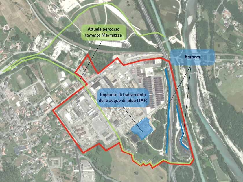 Il progetto operativo di bonifica del sito è stato autorizzato nel 2013. Nel 2018 la società ha presentato una variante progettuale successivamente suddivisa in due fasi: la Fase 1 è stata approvata nel 2024, l’istanza relativa alla Fase 2 sarà trasmessa per approvazione entro dicembre 2025.