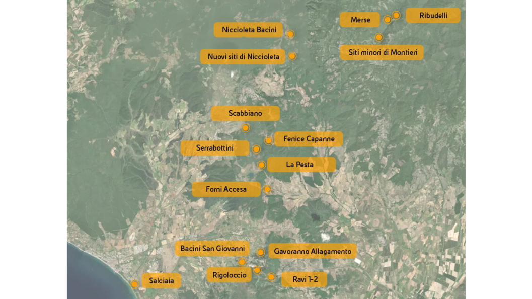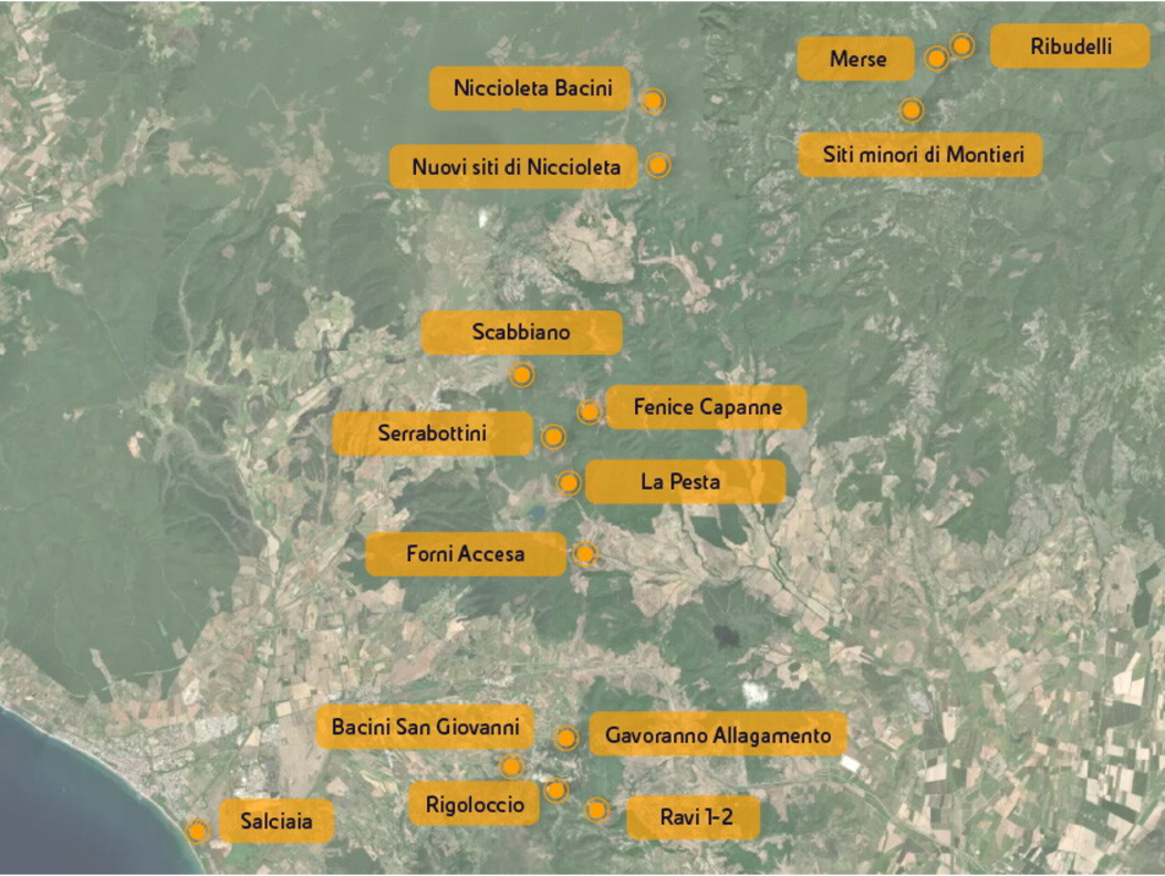 Le Colline Metallifere si estendono nella parte centro-occidentale della Toscana e interessano quattro province: Livorno, Pisa, Siena e Grosseto. Questa area, nota già in epoca etrusca per la ricchezza di giacimenti minerari, ha rappresentato per secoli un polo di estrazione e lavorazione di ematite, pirite, calcopirite, allume, stibnite, calamina, blenda, galena e cassiterite. Nel 1899 la società Montecatini (poi Montedison) acquisisce le miniere di rame di Fenice Capanne e Boccheggiano, e successivamente avvia quelle di pirite di Gavorrano e di Niccioleta. Dal 1973 le attività passano alla Società Lavorazione Minerali e Derivati – Solmine (gruppo Egam) e nel 1978, con il loro progressivo abbandono, i siti minerari vengono conferiti ex lege a Eni, allora ente di Stato. Oggi, come Eni Rewind, siamo titolari di quattro concessioni minerarie attive su circa 1.459 ettari e proprietari di 680 ettari di terreni, di cui 360 interessati da interventi ambientali. Le attività in corso in linea con il piano di interventi previsto dagli Accordi di Programma sottoscritti con gli enti e i territori, riguardano la messa in sicurezza mineraria, la bonifica dei suoli e della falda, secondo un modello di gestione sostenibile e rigenerazione territoriale. Al 31 dicembre 2024 per le nostre aree abbiamo sostenuto costi ambientali pari a 148 milioni di euro.